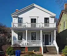 The Parker-Marshall House, a Greek Revival design, is the oldest house on the park, built in 1852. It was originally located where the Murray-Lanpher House is now, then was moved to an adjoining lot in 1883 and then moved to its current site in 1976.[2] |