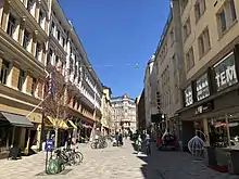 Iso Roobertinkatu (Swedish: Stora Robertsgatan), meaning "great Robert street", is a street running northeast-southwest in the Punavuori district in Helsinki, Finland. Its shorter east-west counterpart Pieni Roobertinkatu ("little Robert street") is located near it in Kaartinkaupunki. Both streets are named after Robert Henrik Rehbinder (1777–1841). Iso Roobertinkatu is among the best known pedestrian and shopping streets in Helsinki. In the southwest the street, unlike other streets in Punavuori, does not extend to Telakkakatu or the sea shore but instead ends at the Sinebrychoff Park with stairs leading from the end of the street onto the cliff at the park. At the western end of the street a very short street called Kivenhakkaajankatu ("stonemason street") branches off to the left, ending at the intersection with Punavuorenkatu. In the northeast Iso Roobertinkatu reaches to Yrjönkatu, east of which it continues under the name of Pieni Roobertinkatu,[1] but not exactly in the same direction.