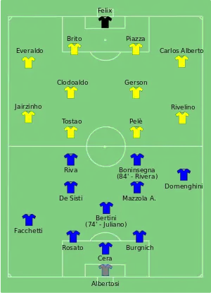 Semi-finals West Germany4–3 (a.e.t.)Mexico CityBoninsegna, Burgnich, Riva, Rivera