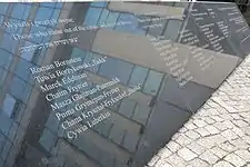 Monument to the Evacuation of the Warsaw Ghetto Fighters, Izrael Kanal's name in the third column.