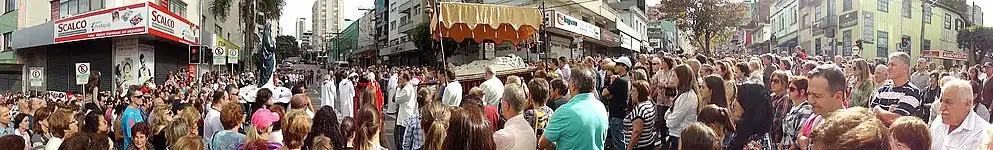 The 2012 Encounter Procession, one of the most traditional in Caxias: Our Lady of Sorrows leaves the Chapel of the Holy Sepulcher and meets the Dead Lord, who leaves the Cathedral, at the intersection of the Guia Lopes Street and Júlio de Castilhos Avenue.