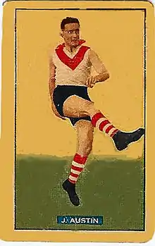 John William Austin (9 December 1910 – 8 March 1983) was an Australian rules football player for the South Melbourne Swans from 1930 to 1938, playing 140 games in the back-pocket and at full-back. Austin was judged one of the best players in South Melbourne's 1933 premiership win over the Richmond Football Club.[1]