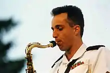 At age 25 (in 1989) Cooper was hired as a saxophonist/woodwind doubler and staff arranger for the United States Army Jazz Knights, a premier musical ensemble of the United States Armed Forces.[25] For 6 years he toured, performed, wrote for and recorded extensively with the West Point Band's musical group to include A&E television appearances at the Hatch Memorial Shell with the Boston Pops, jazz festivals across the Northeastern United States, backing entertainers and jazz artists.[24] He participated in the funeral of former President Richard M. Nixon in April 1994.[26]
