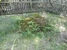 Jack and Charmian London are both buried on the property not far from the Wolf House. After his earlier funeral in Oakland, Jack's ashes were spread at sunset on November 26, 1916, at this small knoll overlooking the Valley of the Moon. Charmian, Jack's sister Eliza, and a few workers were the only people in attendance.[16] In accordance with his wishes, his ashes were laid next to some pioneer children, under a rock that belonged to the Wolf House. After Charmian's death in 1955, she was also cremated and then buried with her husband in the same simple spot that her husband chose.