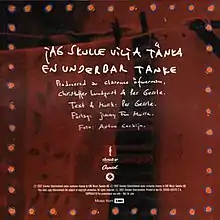 "Jag skulle vilja tänka en underbar tanke" ("I would like to think a wonderful thought") is a pop song written by Swedish singer and composer Per Gessle. It is the second single released from his sixth studio album En händig man, in digital format only. A promotional single (CDPRO 4410) was also released. It spent seven weeks on the Swedish Singles Chart, peaking at number 29.