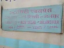 The 14682/81 Jalandhar City New Delhi Express is an Express train belonging to Indian Railways - Northern Railway zone that runs between Jalandhar City and New Delhi in India.