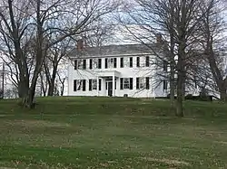Besides the house, early buildings on the property include an original outhouse and a spring house. The property also included an early barn and miscellaneous multi-purpose building, but these two structures were removed in 1959.[2]:2 Today, the house lies along Chapel Drive southeast of Ellwood City; its prominent hilltop location makes it visible to the south and east to a distance of several miles. Although a modern residential subdivision is located along Chapel immediately to the north of the Clow property, it retains much of its historic integrity amid a primarily rural setting.[2]:2,3,14 This places it in contrast with most period wooden Greek Revival farmhouses in rural Beaver and Lawrence counties: nearly all surviving examples of this type of architecture have been heavily modified.[2]:6 Only one other Greek Revival house in Beaver County is listed on the Register — the William B. Dunlap Mansion in the borough of Bridgewater in the central part of the county — and the county's only other 19th-century farmhouse on the Register is the David Littell House in the county's far south.[1]