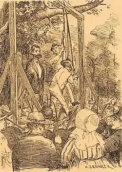 Although Copeland escaped the gun battle, he was eventually captured near Mobile in 1849, tried for his Alabama crimes, and sentenced to a four-year prison term. Upon completion of the prison term, Copeland was transferred to Mississippi to stand trial for the Harvey killing, for which he was convicted and sentenced to hang. Before his death on the gallows in 1857, Copeland made a full confession to Sheriff J.R.S. Pitts in Perry County, Mississippi, naming each member of the clan.[1] Many clan members were prominent citizens of Mobile and the surrounding area.