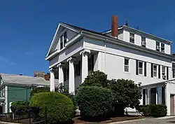 It is a 2+1⁄2-story, wood-framed structure, three bays wide, with a front-gable roof and a flush-boarded facade sheltered by a monumental two-story, Greek Revival style portico with fluted Ionic columns. It was built in 1843 by James D. Hathaway, a carpenter, and was perhaps designed by Russell Warren or copied by Hathaway from his designs.[2] It is one of seven extant monumental temple-fronted Greek Revival houses in Fall River. It is also located within the Lower Highlands Historic District.