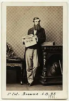 Recovering his health at the end of 1856, Browne was quartered in Dublin until July 1859, when he went out to India to command the Engineers in the Bombay Presidency, with headquarters at Poona; in March 1860 he went on to Mauritius as Commanding Royal Engineer, and in August 1861 he returned home to become superintendent of military discipline (afterwards called assistant-commandant) at Chatham, where he was second in command. He was promoted to brevet-colonel on 26 December 1864, and regimental lieutenant-colonel on 2 May 1865.[3]