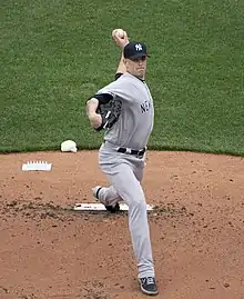 On November 19, 2018, the Mariners traded Paxton to the New York Yankees for Justus Sheffield, Dom Thompson-Williams, and Erik Swanson.[19] In April 2019, Paxton became only the second Yankees pitcher (after David Cone in 1998) to strike out 12 or more batters in consecutive starts.[20] In 2019 he was 15–6 with a 3.82 ERA in 29 starts, in which he struck out 186 batters in 150.2 innings (11.1 strikeouts per 9 innings).[21]