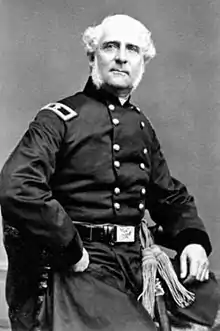 Despite his complete lack of military experience at the outbreak of the Civil War, Wadsworth was commissioned a major general in the New York state militia in May 1861. He served as a civilian volunteer aide-de-camp to Maj. Gen. Irvin McDowell at the First Battle of Bull Run on July 8. McDowell recommended him for command and, on August 9, Wadsworth was commissioned a brigadier general; on October 3 he received command of the 2nd Brigade in McDowell's Division of the Army of the Potomac. He then led the 2nd Brigade, 3rd Division, of the I Corps of the army until March 17.[4]