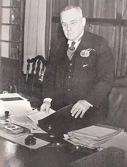 He became the Minister of Finance and the Minister of Education, and soon he became the closest advisor of Jan Smuts. He acted as Prime Minister during the Second World War, in which Smuts was heavily involved. This multi-tasking of jobs had become a habit continued throughout Hofmeyr's career. In cabinet he could at times handle six or seven ministerial portfolios simultaneously, even while acting as prime minister in Smuts's absence.[32] This work ethic would lead to burnout and was catastrophic for Hofmeyr's health.