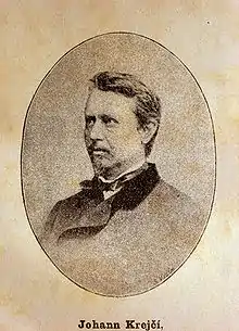Jan Krejčí (28 February 1825 Klatovy[1] – 1 August 1887 Prague) was a Czech educator, geologist, journalist and politician. He wrote the first Czech textbook of geology in 1860, whose revised edition was released again in 1877 under the title Geologie čili nauka o tvarech zemských se zvláštním ohledem na krajiny Československé.