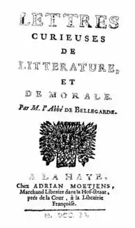 Jean-Baptiste Morvan de Bellegarde (30 August 1648, in Nantes – 26 April 1734), abbé de Bellegarde, was a French Jesuit for 15 years, before joining Francis de Sales's order. He was the author of a number of works on ethics, religion, and education, which included Réflexions sur le ridicule (1696) and Réflexions sur la politesse des mœurs (1698).[1]