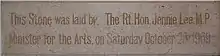 A plaque in Buccleuch Place, near the University of Edinburgh which reads:'In honour of Baroness Jennie Lee, 1904–1988, An early woman MP, first Minister for the Arts, founder of the Open University, graduate of the University'
