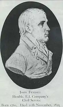- ↑ "A half-length portrait vignette of John Fendall (c.1762-1825), Bengal Civil Service". British Library. Courtesy British Library WD4070.