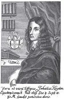 Rosicrucian sources, including Heydon's own English Physician's Guide and Frederick Talbot's The Wise Man's Crown, give a florid biography for Heydon, including a claim to be descended from a King of Hungary. However, he was actually born in "Green Arbour" (near the Old Bailey), London, the son of Francis Heydon (of Sidmouth in Devonshire) and Mary (née Chandler, of Worcestershire). He was baptised at St. Sepulchre's Church.[1] He had one sibling, a sister, Anne, two years his junior.