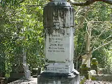 John May's headstone at Toowong Cemetery. Note that the year of death is incorrect.