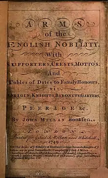 Title page of 'Arms of the English Nobility', John Millan, 1749.
