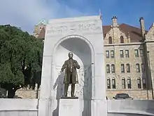 A statue of Mitchell stands on the grounds of the Lackawanna County Courthouse, Scranton, Pennsylvania, the site of the Coal Strike of 1902 negotiations in which President Roosevelt participated. Because of the significance of these negotiations, the statue and the Courthouse were added to the National Register of Historic Places in 1997.[5]