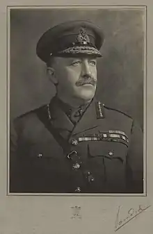 He fought in World War I, initially as commander of the 2nd Guards Brigade from 1915 and then as General Officer Commanding (GOC) 40th Division from 1917, leading his Division at the Battle of Cambrai.[4] In July 1918 he went on to become General Officer Commanding 5th Division remaining in that role until the end of the War.[4]