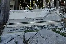 In later life, Bateman-Champain suffered from hay fever, asthma, and eventually bronchitis, and in January 1887 he was persuaded to leave England for the Mediterranean for the sake of his health. After spending three weeks at Cannes, France, he went to Sanremo, Italy, where he died on 1 February 1887.[10] The Shah of Persia sent a telegram to his family expressing his great regret for the loss of Bateman-Champain, "qui a laissé tant de souvenirs ineffaçables en Perse" ("who has left so many indelible memories in Persia"), a very unusual departure from the rigid etiquette of the court of Teheran.[10]