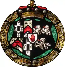 Arms of 1st Baron Churston impaling Newman of Mamhead for his second wife, stained glass, Churston Ferrers Church