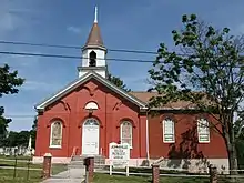 The town of Johnsville was first settled by English and German immigrants in the 1740s, including the Birely and Iler families.[3] In the 1770s, a congregation of German Baptists or "Dunkers" organized Beaver Dam Church two miles northeast of the present town, the second oldest Church of the Brethren congregation in Frederick County.[4] In the early 19th century, the town of Johnsville developed to serve the needs of travelers on the main road leading from southern Pennsylvania to Frederick, the specific location of the town being almost halfway between Union Bridge and Libertytown.[5] In 1854, the General Assembly of Maryland created a new election district with Johnsville at its center.[6] A map of Frederick County, drawn by Isaac Bond in 1858, records the presence of a hotel, a wheelwright's shop, a blacksmith's shop, two stores, a post office, school, a physician, and two churches (Methodist Episcopal and Methodist Protestant) in Johnsville.[7]