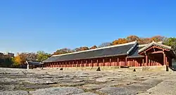 Jongmyo (Korean: 종묘) is a Confucian shrine in the Jongno District of Seoul, South Korea. It was originally built during the Joseon period (1392–1897) for memorial services for deceased kings and queens. According to UNESCO, the shrine is the oldest royal Confucian shrine preserved and the ritual ceremonies continue a tradition established in the 14th century. Such shrines existed during the Three Kingdoms of Korea period (57–668), but these have not survived. The Jongmyo Shrine was added to the UNESCO World Heritage list in 1995.[1]