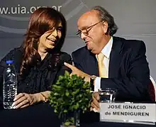 De Mendiguren returned to the private sector as a member of the UIA in 2004.[4] He was re-elected president of the UIA on 27 April 2011, in replacement of Héctor Méndez.[10] His second presidency corresponded to a period of political friendship with the government of Cristina Fernández de Kirchner, with whose administration the industrial sector had previously been generally at odds.[11]