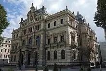 Following his early homeschooling, some time in the late 1850s José María entered the Jesuit Tivoli college[30] in Bordeaux.[31] He spend there at least few years; due to unspecified family reasons he moved to an unidentified school in Pamplona,[32] where in the mid-1860s he obtained the baccalaureat.[33] Some sources claim he attended also Real Seminario de Nobles de Vergara[34] and an institution in Madrid.[35] José María married[36] a Valenciana,[37] María Vives de Cañamas (1853-1910),[38] daughter of 18. Conde de Almenara (1814-1883).[39] The couple had 7 children, born between 1879 and 1894;[40] none of them became a public figure. The heir and the 6th marqués, Ignacio de Orbe y Vives Cañamas,[41] was moderately[42] active in the Carlist realm[43] and grew to member of the Vascongadas party executive in the 1960s.[44] Perhaps the best known of José María's descendants is his great-grandson and the 7th marqués,[45] José María de Orbe y Klingenberg, a filmmaker;[46] most of his movies, usually set in the Catalan ambience, do not relate to ancestral records; the last one, however, is partially shot in the Astigarraga palace and contains veiled references to the family history.[47]