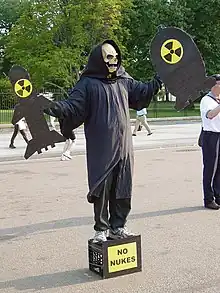 Jose Rodriguez dressed in "Nuclear Death" costume, at DC Anti-War Network (DAWN)'s "No Armageddon For Bush" rally.