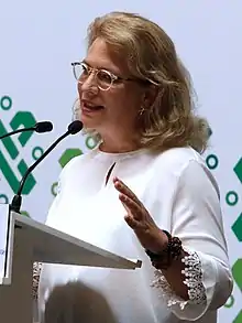 Josefa González Blanco Ortiz Mena (born 9 March 1965) is a Mexican ecologist, politician and diplomat from the National Regeneration Movement who was the Secretary of Environment from 2018 to 2019.[1] She has served as the Mexican ambassador to the United Kingdom since 23 April 2021.[2] On 9 June 2021, she presented her credentials to Queen Elizabeth II at Buckingham Palace accrediting her as Mexico's representative to the United Kingdom.[3]