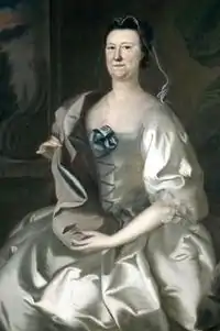 He seems to have been the son of a painter, and to have had a studio in Boston in 1750–1765; among his patrons were many important early American families, including the Apthorps, Amorys, Bulfinches, Lowells, Ewings, Saltonstalls, Winthrops, Winslows and Otises of Boston. Blackburn spent time in Bermuda (1752–1753), Newport (1754), Boston (1755–1758), and Portsmouth (1758–1762). In late 1763 he returned to London and painted portraits in southwestern England, Wales, and Dublin between 1768 and 1777.[2] Approximately one hundred fifty of Blackburn's portraits survive.[2] He excelled at painting textiles (i.e., representing the shimmer of silks, the texture of laces, and the folds of fabrics).[2]