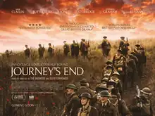 Journey's End is a 2017 British war film based on the 1928 play by R. C. Sherriff. Written by Simon Reade and directed by Saul Dibb, it was screened in the "Special Presentations" section at the 2017 Toronto International Film Festival.[3]