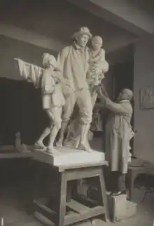 Hesselink working on a plaster cast of the sculptural group in 1917
