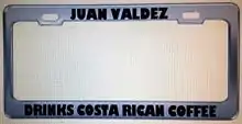 Juan Valdez drinks Costa Rican coffee (Spanish: Juan Valdez bebe café de Costa Rica) is a slogan, implying that Juan Valdez, a fictional character created by the Federación Nacional de Cafeteros de Colombia (Fedecafé), drinks coffee from Costa Rica. At one time, it was used on bumper stickers in Costa Rica.[1] The slogan prompted a lawsuit for the first time in 2006, when Fedecafé sued Café Britt following a t-shirt dispute.