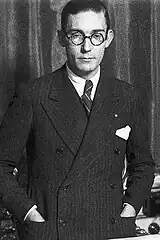 In terms of politics Queipo remained ambiguous. His harrangues focused on negative points of reference, like Bolshevism, criminal chaos, breakdown of order or sedition; the positive ones were patriotism, rule of law, hard work etc., all embodied in "movimiento salvador de España". It might have appeared that he acted in defense of the constitutional regime set up in 1931, e.g. on 22 July he declared that "the marxist conglomerate had deformed the character of the Republic".[115] His first radio charlas ended with vivas to the republic and with the official republican anthem.[116] However, he also ordered flying pre-1931 colors from public buildings. In his personal policy he preferred the military, though civilians appointed to various positions were usually representatives of generic conservative right. When building the propaganda narrative about his coup he focused – apart from himself – on the military, and did his best to marginalise or ignore the Falange and the Carlists, even though both organizations were allowed to send armed patrols across the streets, operate own structures and publish own press.