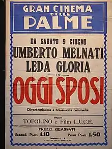 Just Married (Italian: Oggi sposi) is a 1934 Italian comedy film directed by Guido Brignone and starring Umberto Melnati, Leda Gloria and Ugo Ceseri.[1] It was shot at the Cines Studios in Rome.[2] The film's sets were designed by the art director Guido Fiorini.