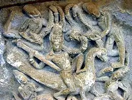 The goddess has two different myths based on her birth. In the first myth, she emerges from Shiva's halo, and is a physical manifestation of her father's grace.[2]