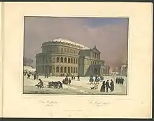 The Königliches Hoftheater (Royal Court Theatre) in Dresden, Saxony, was a theatre for opera and drama in the royal seat of the Kingdom of Saxony from 1841 and 1869, designed by Gottfried Semper. It was the predecessor of today's Semperoper, and is therefore sometimes called Altes Hoftheater (Old Court Theatre).
