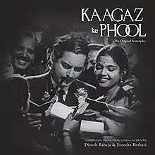 The book marked the journalist Dinesh Raheja and the film archivist Jitendra Kothari's fifth collaborations. They had previously written the books on Bollywood: 1996's The Hundred Luminaries of Hindi Cinema, 2004's The Bollywood Saga, 2012's Sahib Bibi Aur Ghulam: The Original Screenplay, and 2014's Chaudhvin Ka Chand: The Original Screenplay.[1] Kaagaz Ke Phool: The Original Screenplay contains the original screenplay—in Hindi and its English translation—for the 1959 romantic drama Kaagaz Ke Phool, as well as their interviews with the living cast and crew, and the authors' commentary on the film.[2] Directed and produced by Guru Dutt, Kaagaz Ke Phool stars Dutt and Waheeda Rehman.[3]