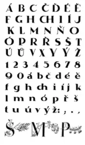 Svolinský illustrated a number of books (among the most famous is the four-volume publication The Czech Year by Karel Plicka and František Volf, (1944–1960) and covers of music books (e.g. by B. Smetana, L. Janáček, Z. Fibich).[6] In 1925, his festive print of Mácha's Máj (for which he designed an original typeface and created a number of illustrations) received a main prize at the International Exhibition of Decorative Arts in Paris.[2] He also created posters, postage stamps, ex-libris, banknotes, etc. He also created a number of stained glass works,[7] mosaics and glass paintings. Since 1935 he was a member of the Mánes Union of Fine Arts and an honorary member of the Hollar group.