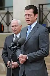 Guttenberg with U.S. Secretary of Defense Robert M. Gates in front of the Pentagon, 2009