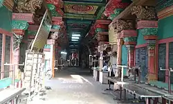 During the 1800s, Nadars, then aspiring business community, established their commercial base in the town. By the end of the 19th century, the Nadars’ rapid rise as a business community lead to confrontation with the Maravars. The Nadars were denied entry to the temple and when they tried to enter in 1899, it led to a series of riots which became known as the Sivakasi riots. A total of 22 people were killed, as many as 800 houses and Big chariot in center of the city (used by temple during festival) were burnt during the riots. Eventually the riots came to an end after the intervention of the military in mid-July 1899.[6][7][8][9] The temple is maintained and administered by the Hindu Religious and Endowment Board of the Government of Tamil Nadu.[10]