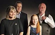Crew of Katie Morag receiving Peabody Award in 2016. Left to right: executive producer Lindy Cameron, writer Sergio Casci, actor Cherry Campbell, director Don Coutts