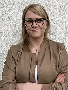Katrín Júlíusdóttir (born 23 November 1974), is a former Icelandic politician. She was elected to the Parliament of Iceland in 2003 and served as Minister of Industry, Energy and Tourism from May 2009 to September 2012 and as Minister of Finance and Economy from 2012 to 2013.[1][2] In 2016 she left Politics and has since then been the Managing Director of Finance Iceland. In 2020 she received the Svartfuglinn-Award for her first Crime Novel, Sykur (en: Sugar), published by Veröld in October 2020. Katrín is married to the Icelandic author Bjarni M. Bjarnason and they have four sons.