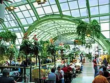 The 6th and 7th floors are entirely devoted to food, and are advertised as having two football fields of food. The 6th floor food hall is called "Delicatessen" and is famous for its wide variety of food and beverages. It has around 110 cooks and 40 bakers and confectioners, supplying more than 30 gourmet counters. The top floor (added in the early 1990s) includes a winter garden with a 1000-seat restaurant surrounded by an all-windowed wall offering a view over the Wittenbergplatz.
