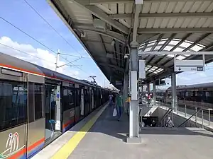 Kazlıçeşme station was opened on 4 December 1955 by the Turkish State Railways as a stop on the Istanbul suburban line. The original station consisted of an island platform with two tracks, located above Zakirbaşı Street about 270 m (890 ft) west of the contemporary station.[2] Kazlıçeşme was chosen as the western portal of the Marmaray tunnel and the construction of a new station started in 2011. The new station had the same platform design, but added a third track for passing intercity and regional trains. Nearing the completion of the tunnel, Kazlıçeşme station was closed on 1 March 2013 and demolished shortly after. Seven months later, on 29 October 2013, the new Kazlıeşme station opened as the western terminus of Marmaray trains from Ayrılıkçeşmesi in Kadıköy. However, due to contractor issues, phase II of the Marmaray project was delayed, effectively cutting off Kazlıçeşme from the rest of the national rail network for a few years until work restarted in mid-2016. Once phase II completed on March 12, 2019, Kazlıçeşme is a stop on the Halkalı to Gebze commuter rail line.